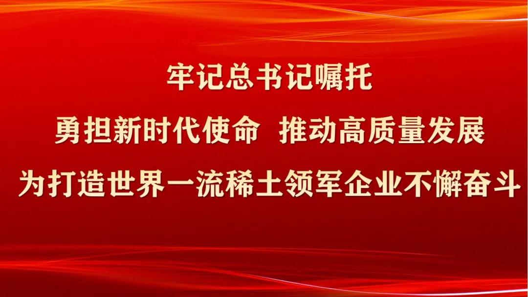 高举中国特色社会主义伟大旗帜,坚持以习近平新时代中国特色社会主义思想为指导,从党的百年奋斗重大成就和历史经验中汲取智慧力量,牢记嘱托、勇担使命,坚持稳中求进工作总基调,完整、准确、全面贯彻新发展理念,坚定不移走以生态优先、绿色发展为导向的高质量发展新路子,推动国家稀土战略资源基地转型升级,加快建设优势突出的稀土新材料产业基地,为打造世界一流稀土领军企业不懈奋斗,在全面建设社会主义现代化国家新征程上书写稀土产业高质量发展新篇章。