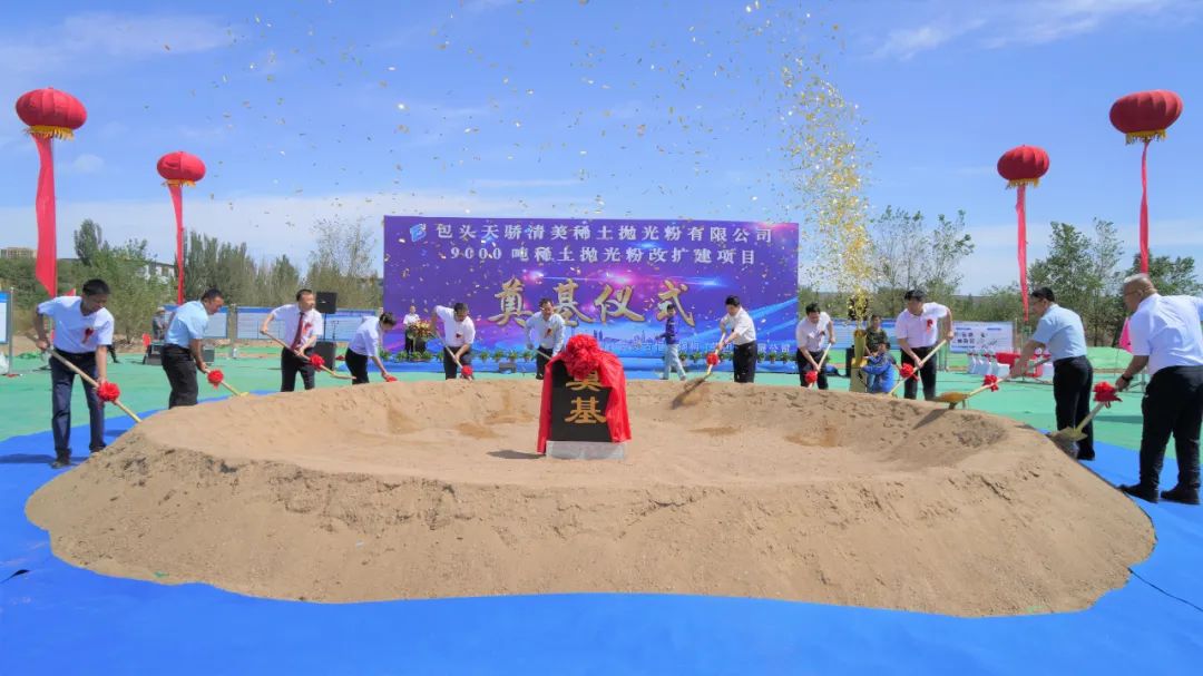 与会领导共同为心博(中国)XINBO·官方网页版清美9000吨稀土抛光粉改扩建项目开工培土奠基。