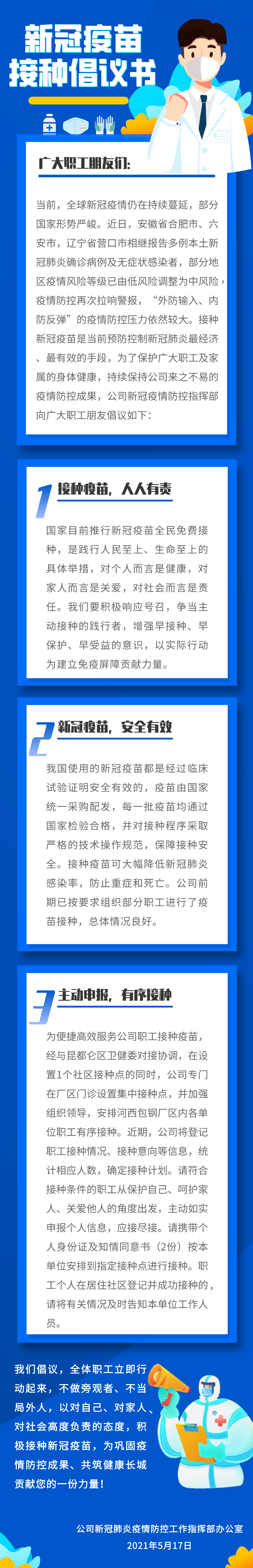 包头市心博(中国)XINBO·官方网页版清美稀土抛光粉有限公司新冠疫苗接种倡议书